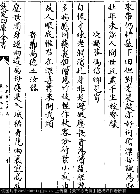 次韵答冯信卿见寄 元末明初 · 徐贲