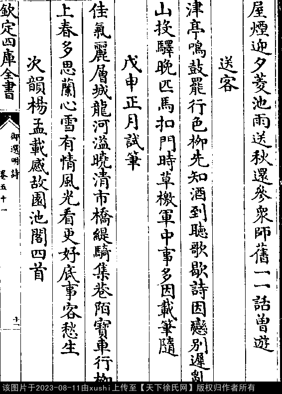 《御選宋金元明四朝詩-清-聖祖玄燁》御選宋金元明四朝詩 御選明詩卷五十一(第 11a - 11b 頁)