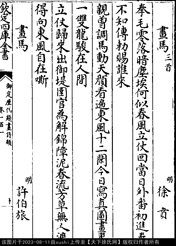 《御定歷代題畫詩類-清-陳邦彥》御定歷代題畫詩類 卷一百一目録(第 14a - 14b 頁)