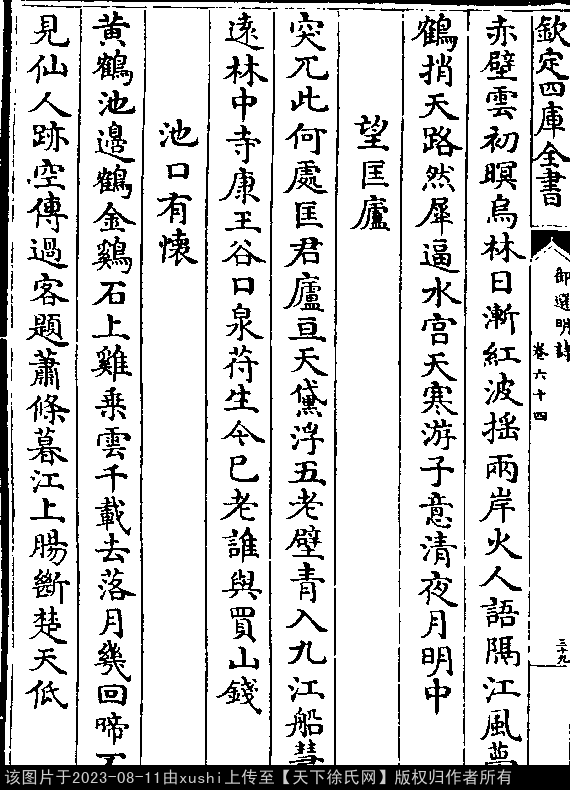 五言律诗 押文韵 出处:御选明诗卷六十四