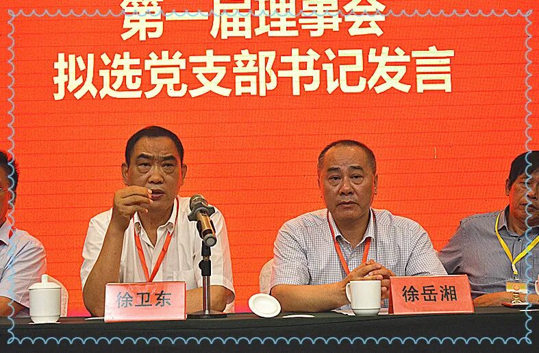 分别为:指导会长徐清华、会长徐道煌、党组织负责人徐卫东、理事长徐小明、监事会主席徐才胜、秘书长徐中华。
